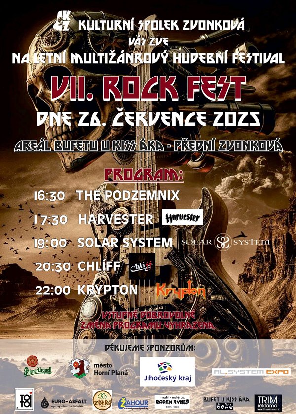 Sobota 26. 7. 2025 – VII. ROCK FEST Zvonková