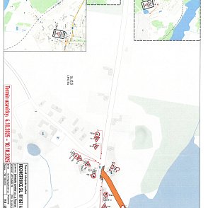 - od 24 .9 do 3.10. 2025 budou prováděny stavební práce na 1. část komunikace po křižovatku – viz situace s DIO v příloze. Komunikace nebude průjezdná v tomto čase od 7,00 – 16,00 hod. Po tuto dobu bude sveden provoz na přívoz. Mimo uvedený čas bude komunikace průjezdná za dodržení uvedeného dopravního značení, stále to bude stavba